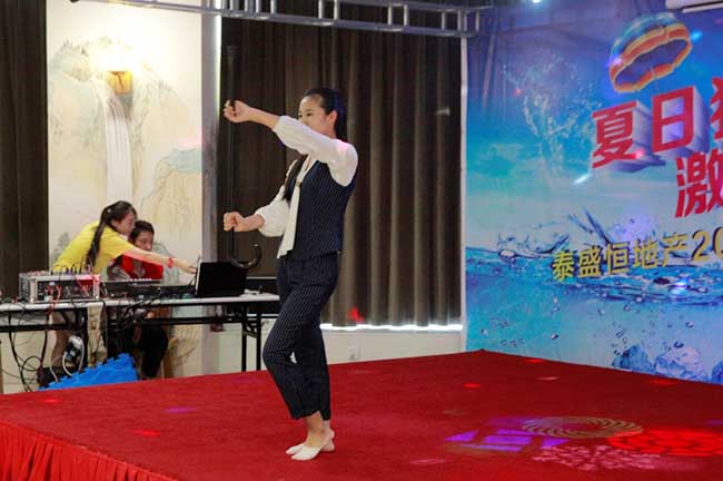 整潔優(yōu)雅的環(huán)境、整齊美觀的桌椅、動(dòng)感活潑的音樂、繽紛閃耀的燈光、精致可口的甜點(diǎn),使整個(gè)活動(dòng)現(xiàn)場(chǎng)熱鬧而不失穩(wěn)重,溫馨而不失活潑。伴隨著動(dòng)感的音樂,大家紛紛就坐,與周圍的同事熱情交談。上午10時(shí)30分,活動(dòng)準(zhǔn)時(shí)開始。泰盛恒地產(chǎn)總經(jīng)理黃總首先發(fā)表了開場(chǎng)致辭,隨后各部門開始表演精心準(zhǔn)備的節(jié)目。《擼起袖子加油干》、《我相信》等合唱唱出了氣勢(shì),唱出了希望,《干了這杯酒》、《紅日》等獨(dú)唱唱出了個(gè)性,唱出了風(fēng)采。舞蹈及健身操等節(jié)目也相繼上演,展示了公司員工積極的精神風(fēng)貌。節(jié)目表演過程中還穿插了精彩的抽獎(jiǎng)環(huán)節(jié),引得現(xiàn)場(chǎng)陣陣歡呼。