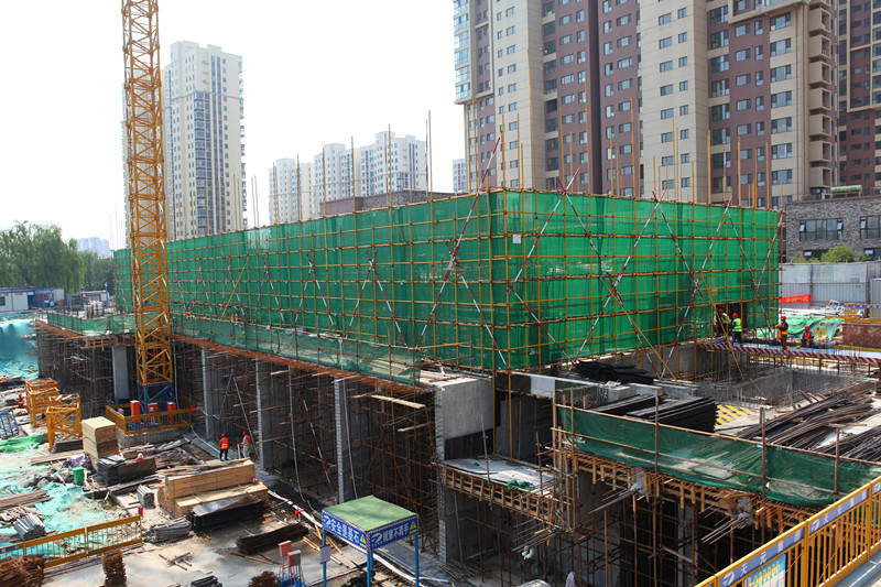 因新冠病毒疫情影響,項(xiàng)目前期施工進(jìn)度受到一定阻滯。為了追趕工期,保障后續(xù)節(jié)點(diǎn)計(jì)劃的按時(shí)完成,復(fù)工后,施工方迅速調(diào)整施工計(jì)劃,馬力全開(kāi)。由于金泰·舒格蘭24#樓負(fù)一層層高較高,涉及高大模板支撐問(wèn)題,板總荷載、梁線荷載超出一定范圍,施工要求高、難度大;再加上場(chǎng)地條件受限,工程用料供應(yīng)勉力維持,給項(xiàng)目建設(shè)進(jìn)度帶來(lái)較大考驗(yàn)。